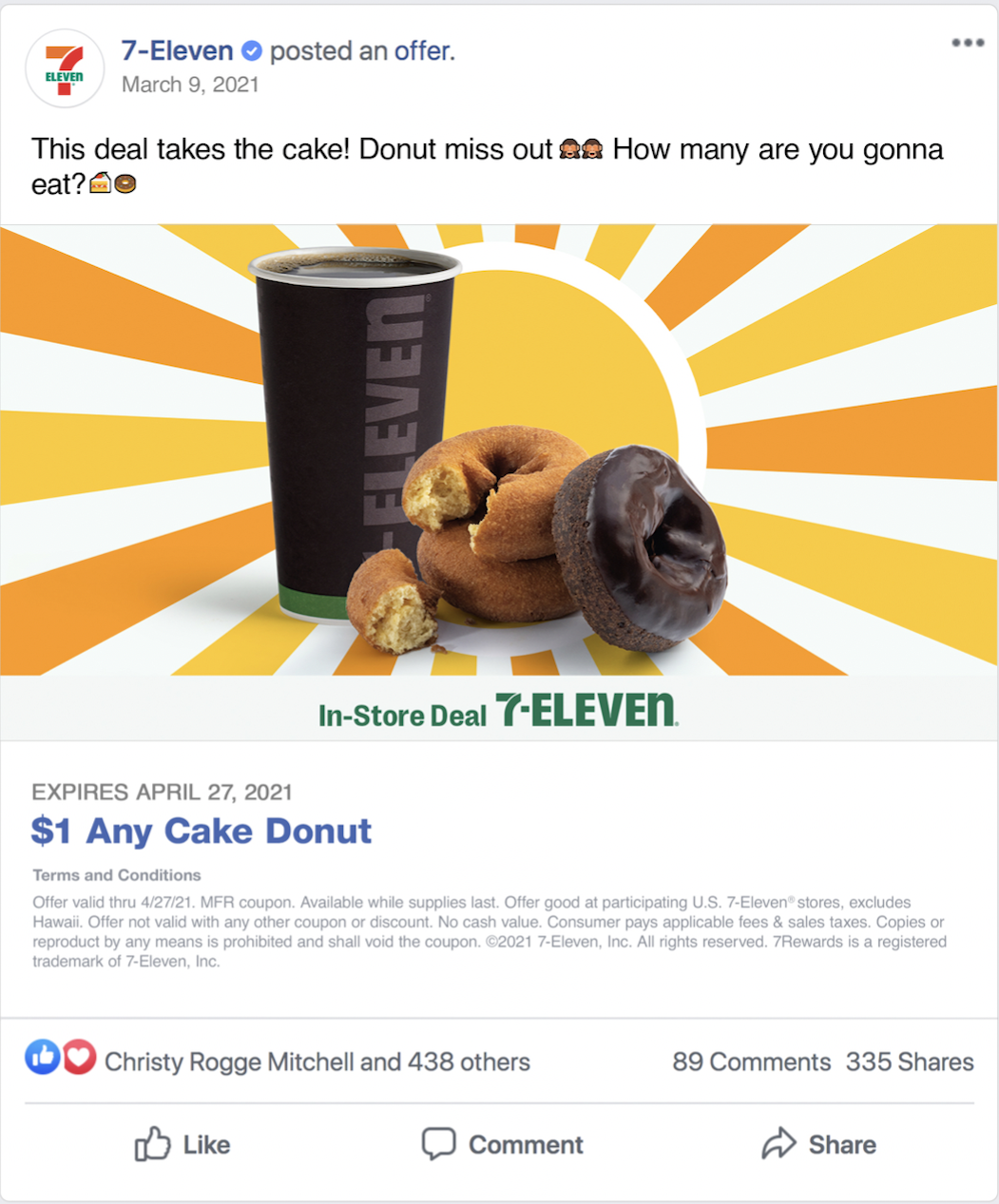 Lighthearted offer posts on the company’s official Facebook page provide playful, quick copy in a limited space.